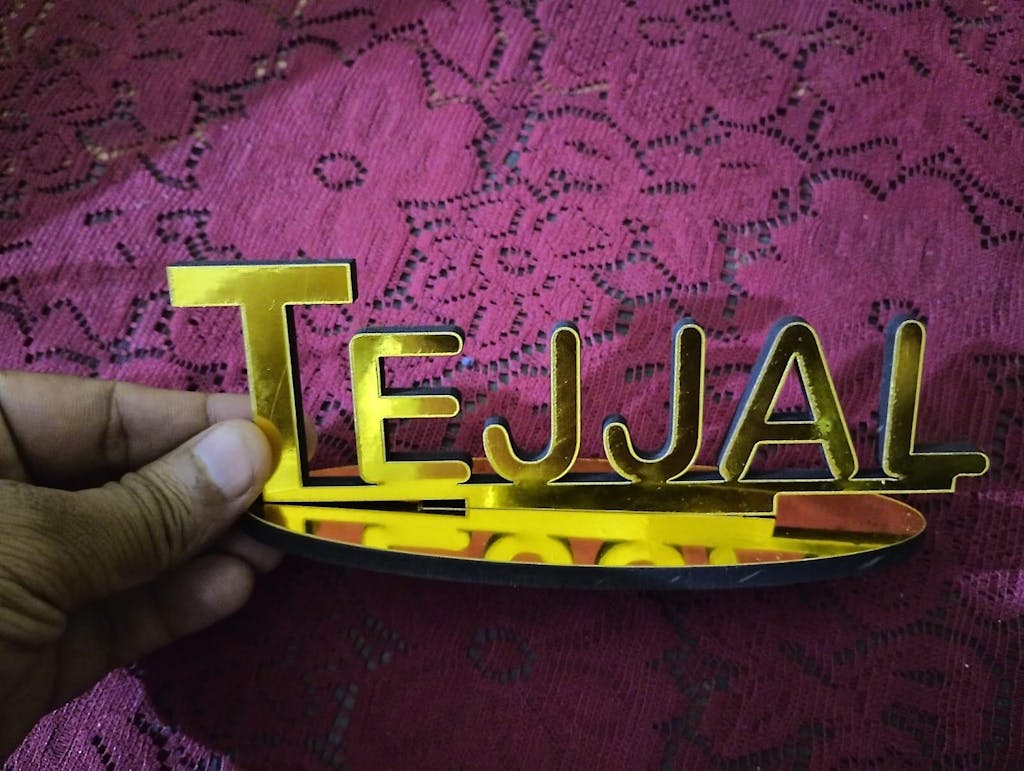 Premium quality custom 3D table nameplate. Apna naam ya text add karke personalize karein. Office desk, home décor ya gift ke liye perfect option.